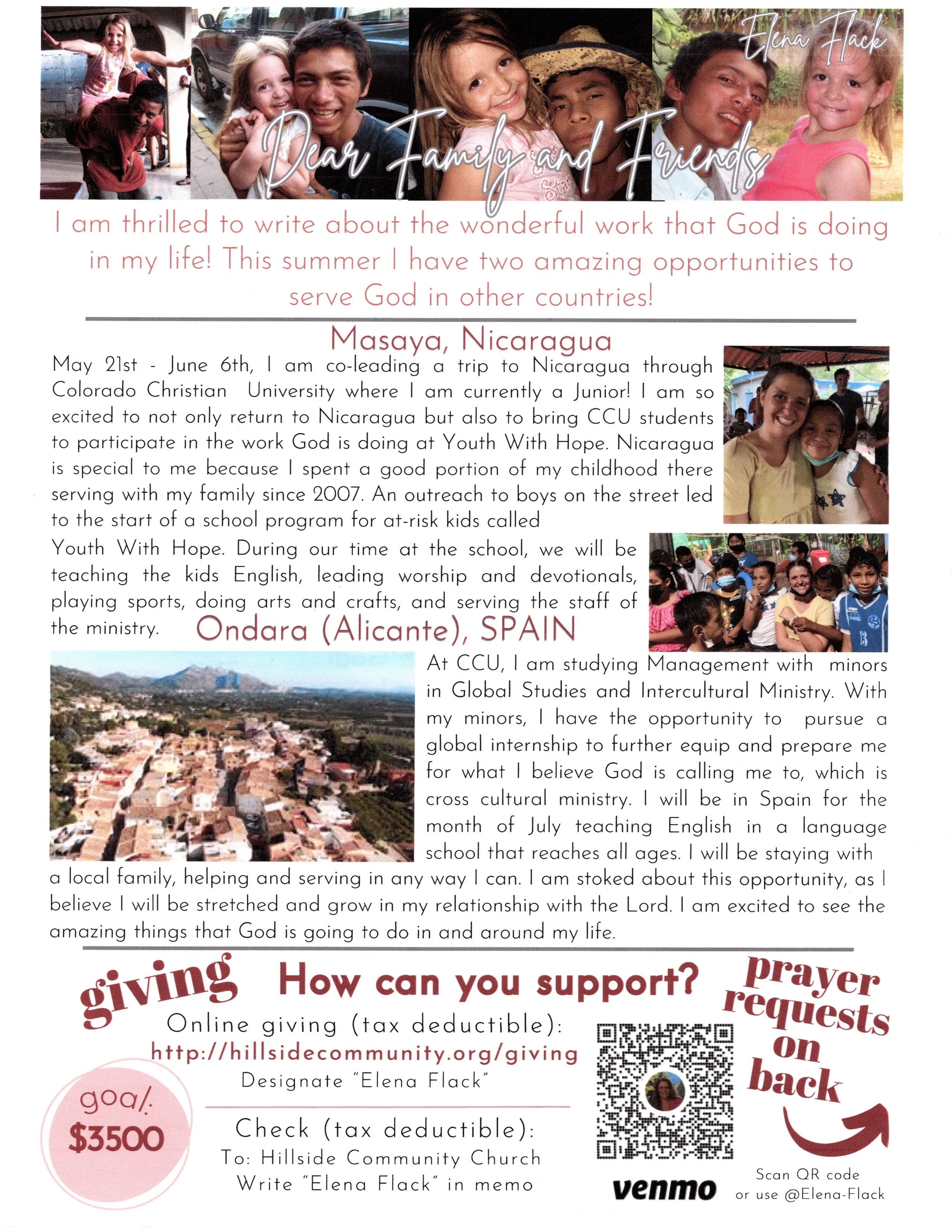 Additionally please read through Elena’s letter as she plans to serve in Spain this summer! Please be praying for all things to come together for an amazing summer of growth, fruit and obedience!